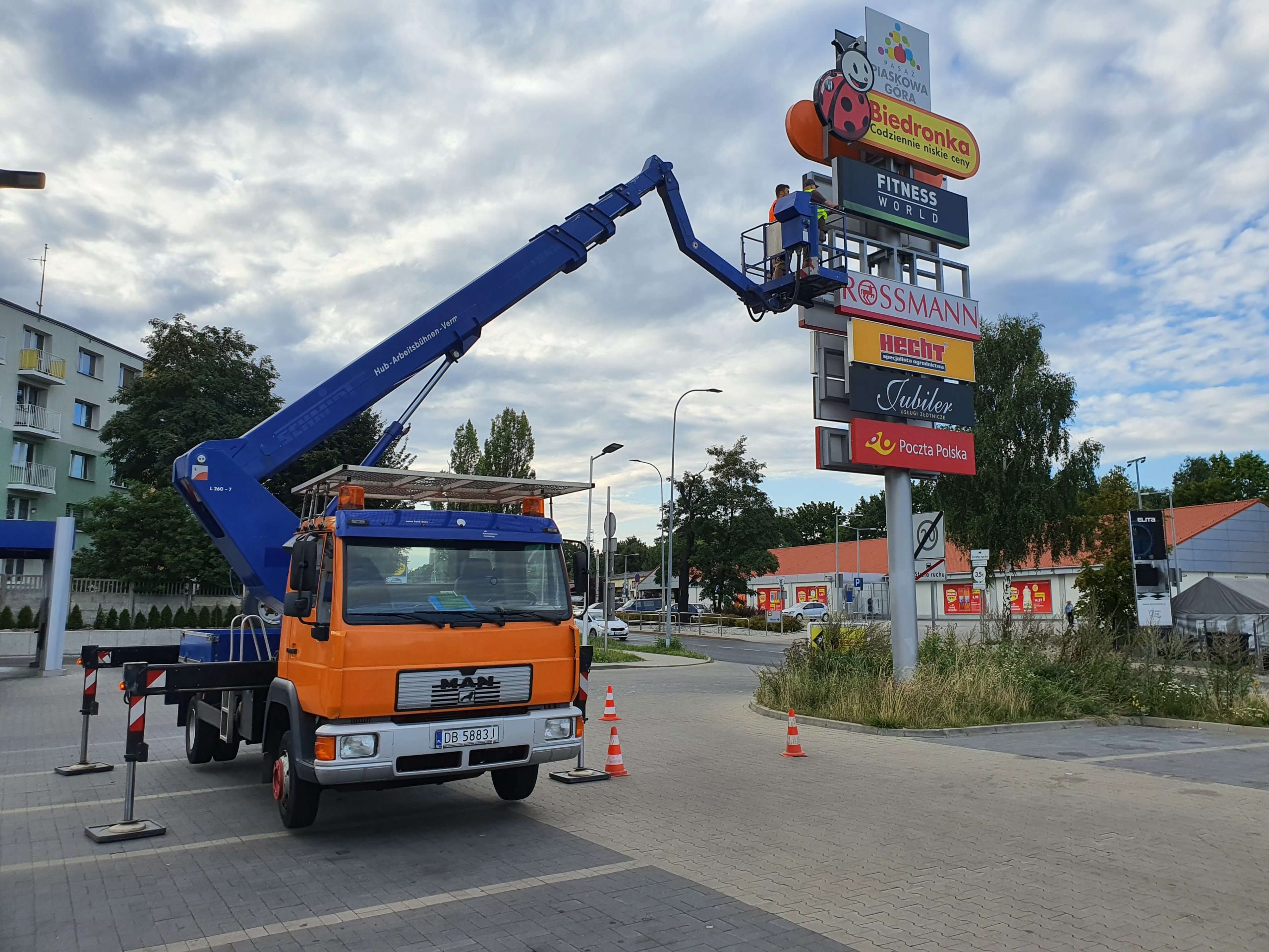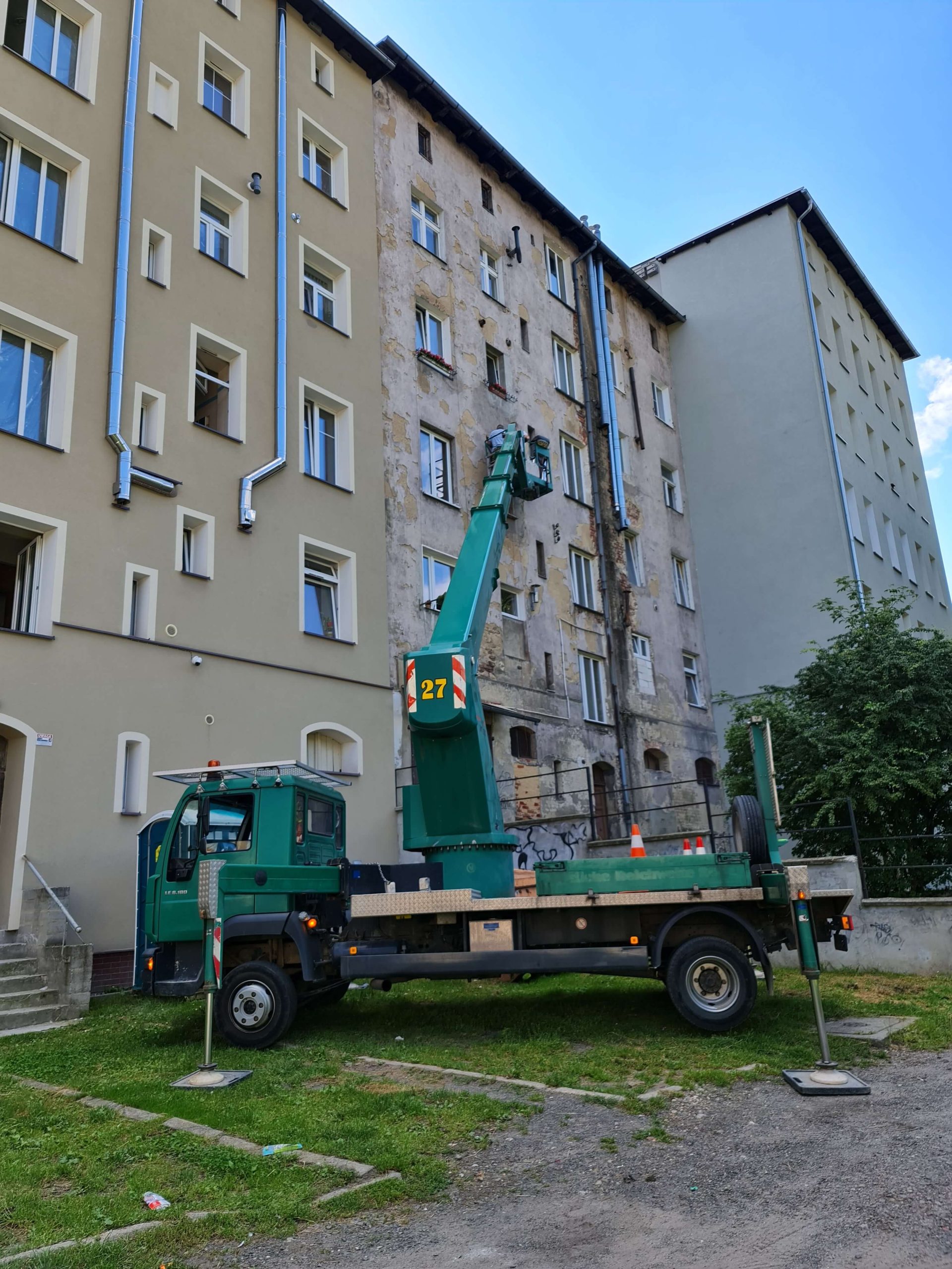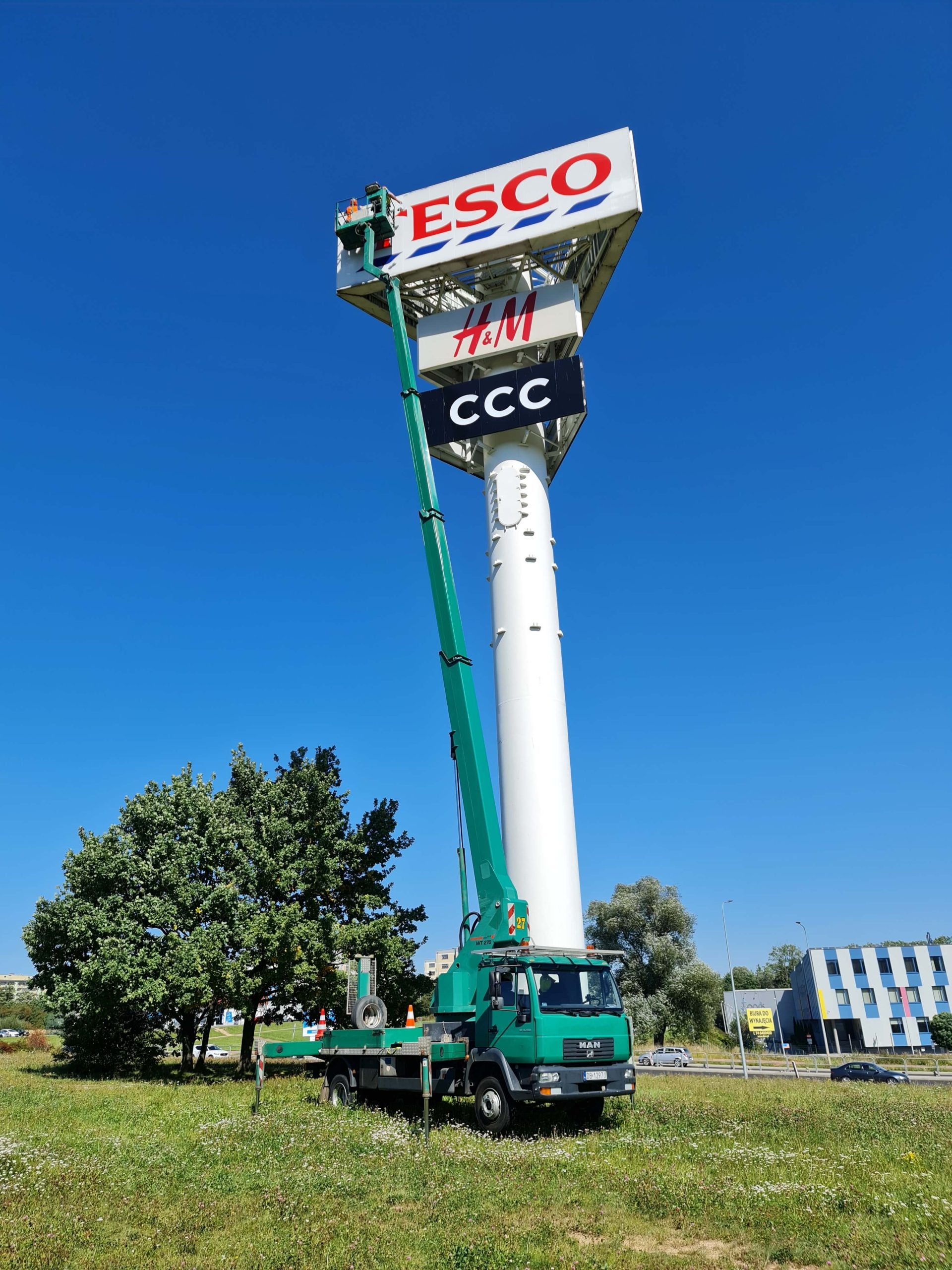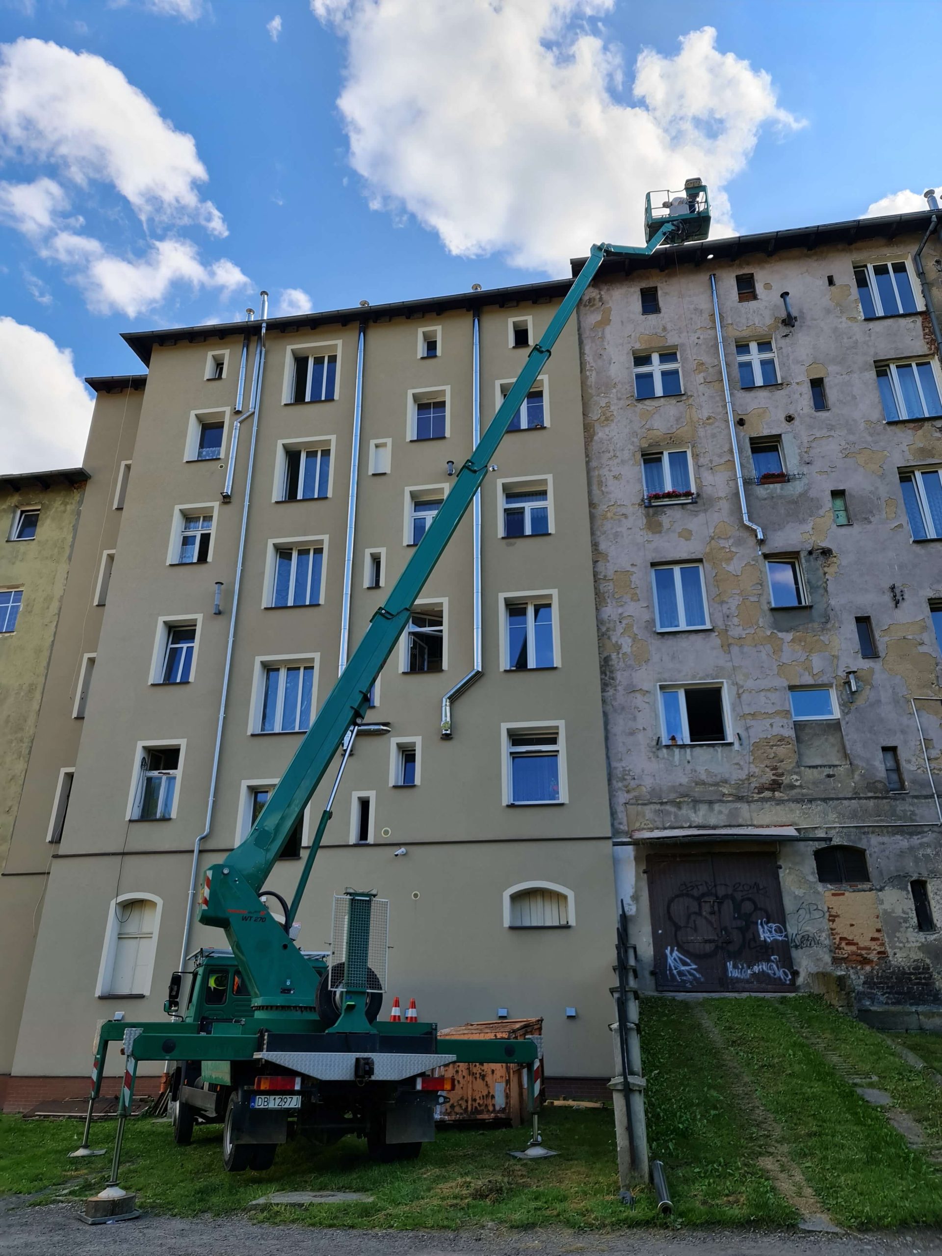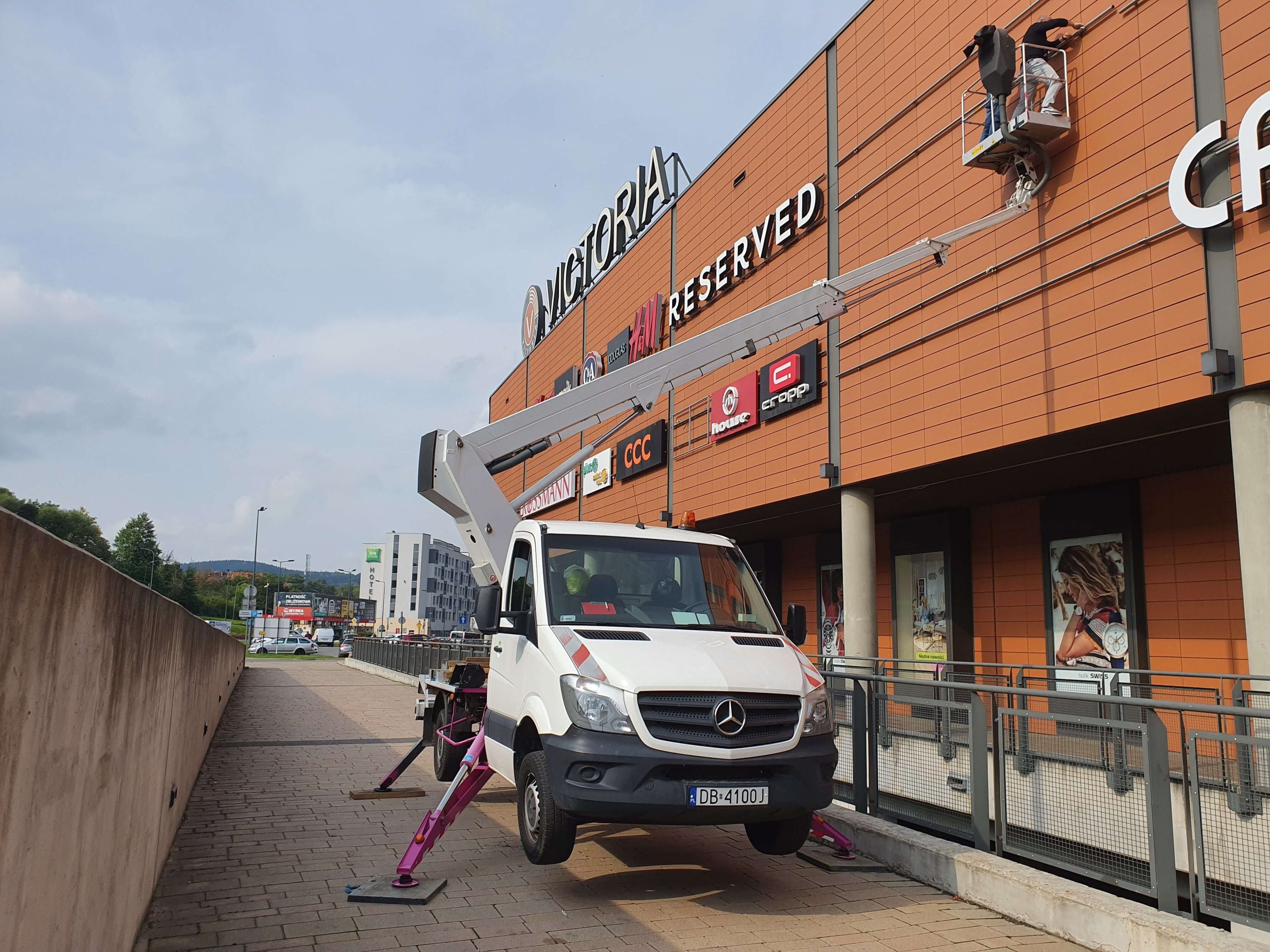 konserwacja i malowanie elewacji budynków, montaż oświetlenia zewnętrznego, prace przy instalacjach reklamowych, inspekcje i naprawy linii energetycznych
